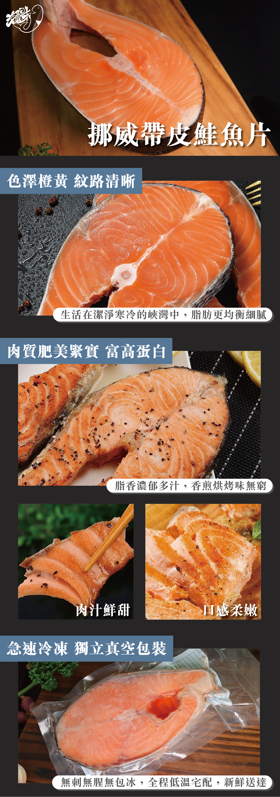 商品名稱:挪威進口帶皮鮭魚片